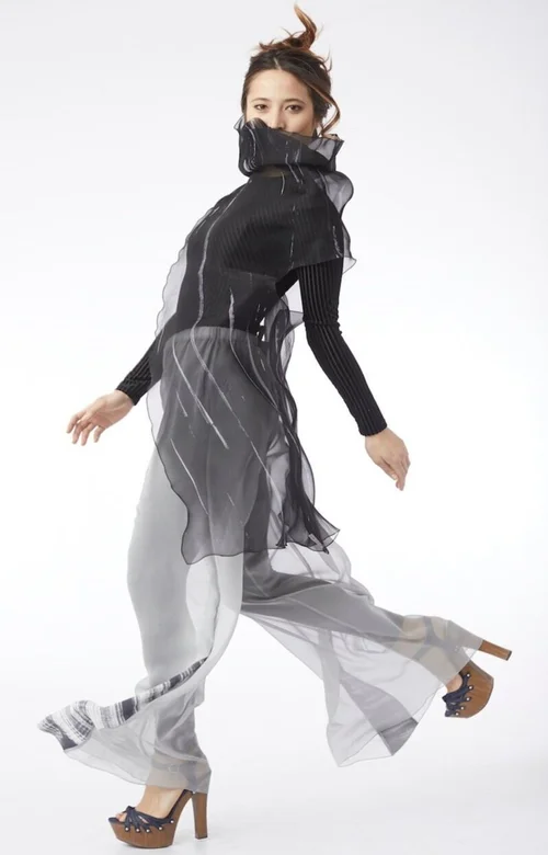 To determine its visual impact, I spend time layering the fabric with itself, other fabrics and over garments and entire outfits. My goal is for my designs to connect with — and light up — the wearer with joy and a sense of individuality and vibrancy. As if I’ve created the piece for just that woman. My work has been called “visual poetry”. Whether the sunniest orange or the most muted neutrals, my hope is to create a feeling of delight and delicious surprise. Once on the body, the designs truly come to life as art.”